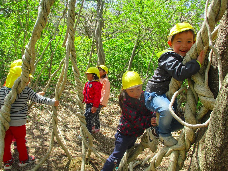 | 先日、環境整備できれいにして頂いた、巣箱の森 つるによじ登ったり、木のぶらんこしたりと、いろんな遊びが楽しめます!! |